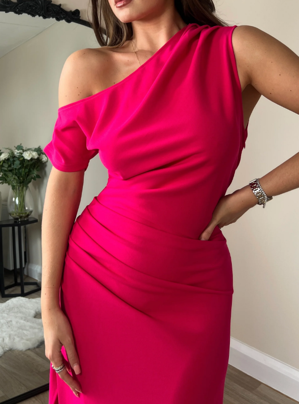 Experience modern elegance with the Asymmetric Neckline Midi Dress - a classic, timeless piece crafted from the highest quality materials for a luxurious feel. Its unique asymmetric neckline provides visual interest, while the sleek midi skirt silhouette flatters the figure, creating an exquisite look that will never go out of style.